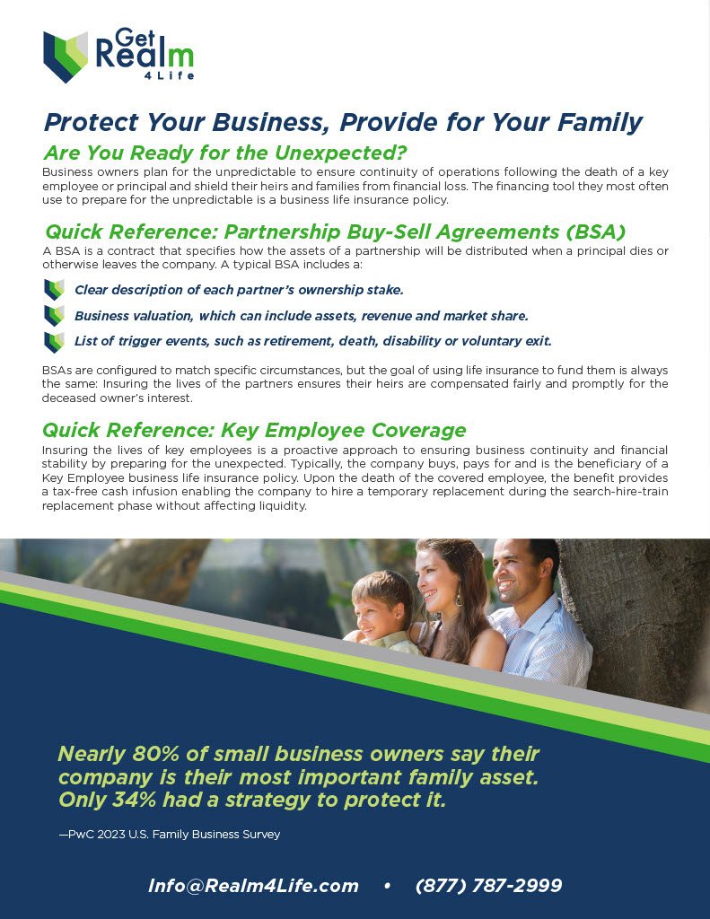 Business owners plan for the unpredictable to ensure continuity of operations. The financing tool they use most often is a business life insurance policy.